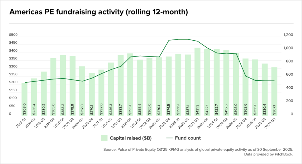 Com exits ainda tímidos na região (quase toda a movimentação concentrada nos EUA com USD 224,6 bi em aquisições e USD 149,1 bi em buyouts até Q3’25) levantar capital novo virou maratona.