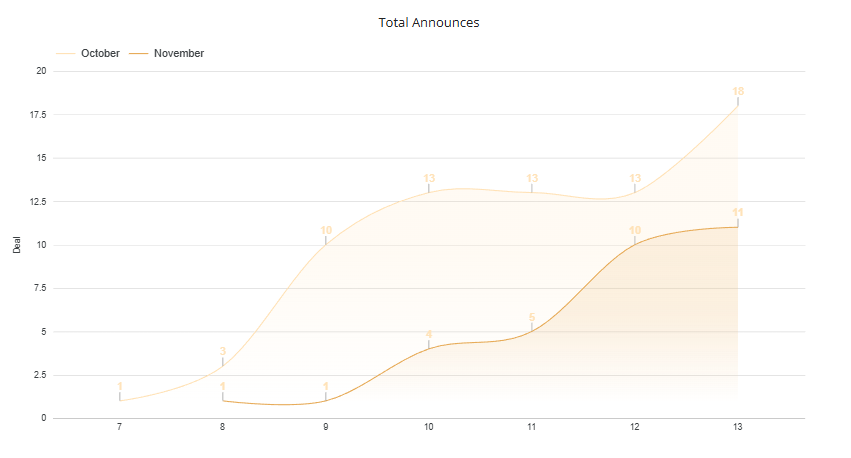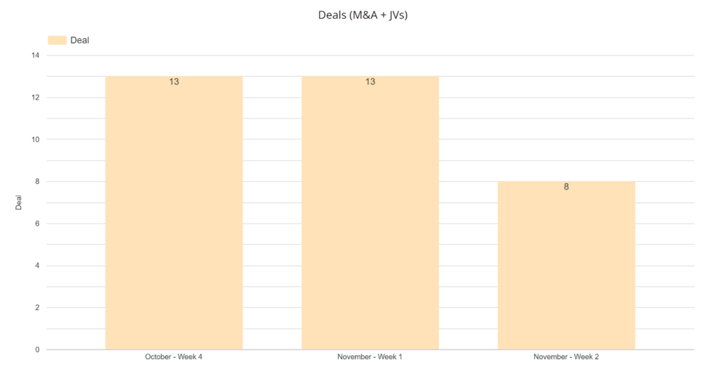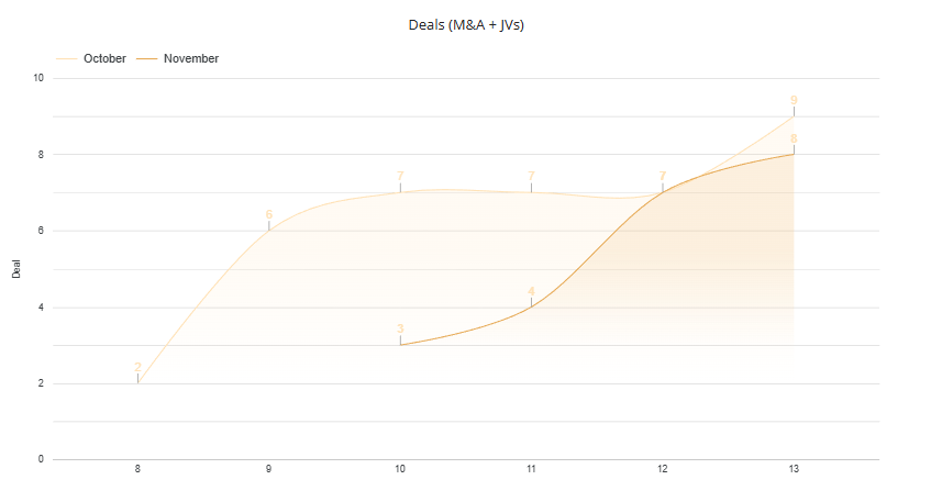 El mercado latinoamericano M&A mostró mucha variabilidad, cerrando el periodo de octubre con un descenso del 3% en el número de transacciones, pero con un significativo aumento del 17% en el capital movilizado. Donde Brasil lidera en volumen y México en valor.