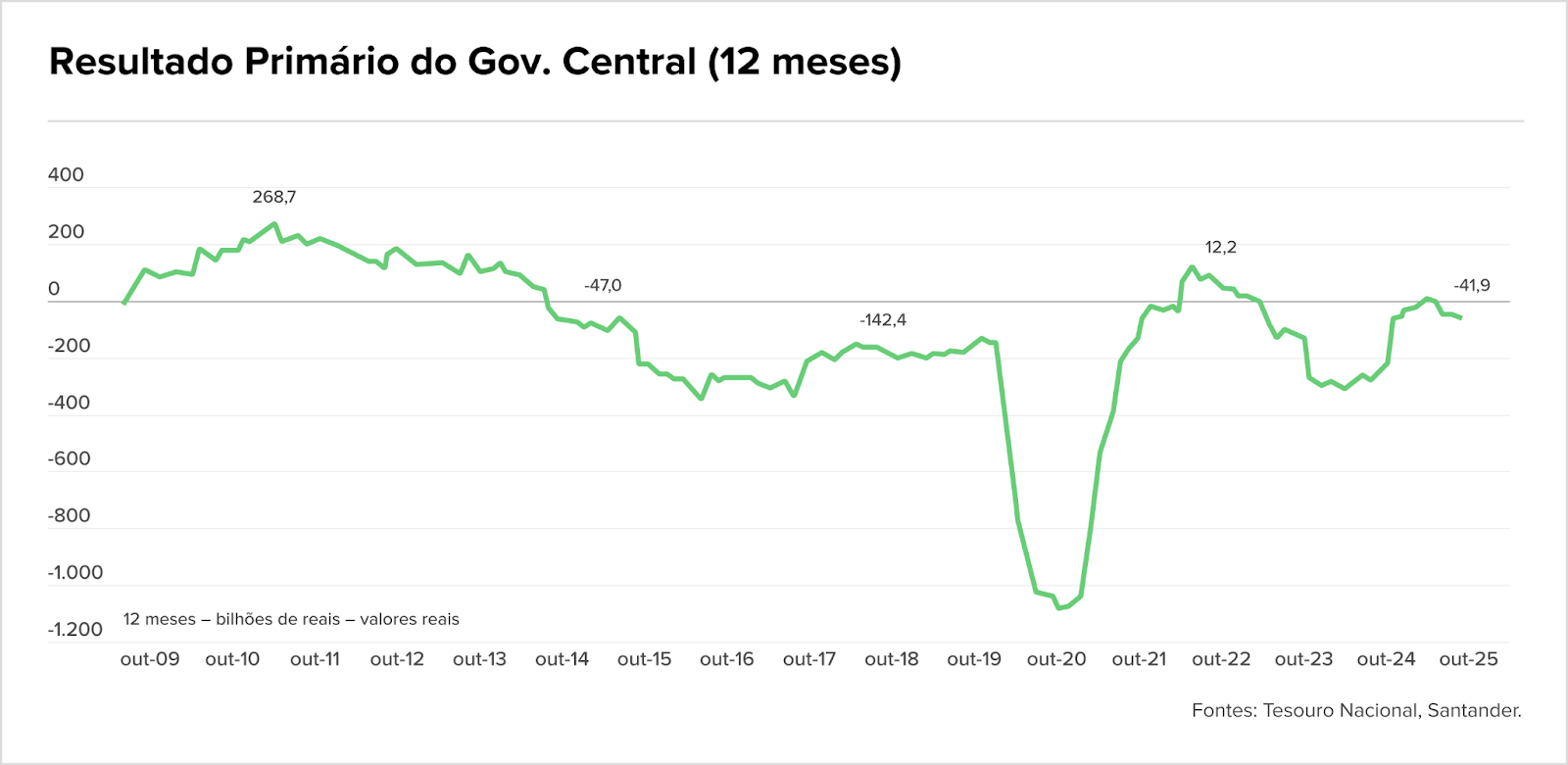 Os sinais macro recentes animam. O IPCA-15 de novembro veio com alta de 0,20% m/m, acima do consenso, mas com surpresas concentradas em itens voláteis. A média dos núcleos recuou para o menor nível desde meados de 2024, evidenciando uma dinâmica benigna da inflação. O mercado de trabalho de outubro trouxe resultados mistos: o CAGED gerou 85 mil empregos formais, abaixo do esperado, enquanto a taxa de desemprego caiu para 5,4%. É um mercado ainda apertado, mas sem sinais de superaquecimento.