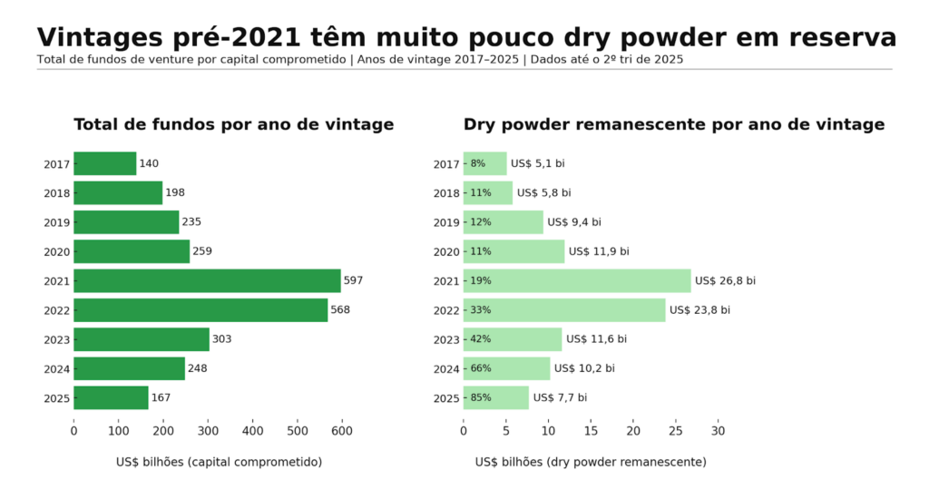 O aprendizado do mercado é claro: fundos mais antigos, de 2017 a 2019, já começaram a devolver capital, enquanto os mais recentes aceleram a geração de retornos, com cerca de 15% dos fundos 2023 já liberando DPI após 18 meses de atividade.