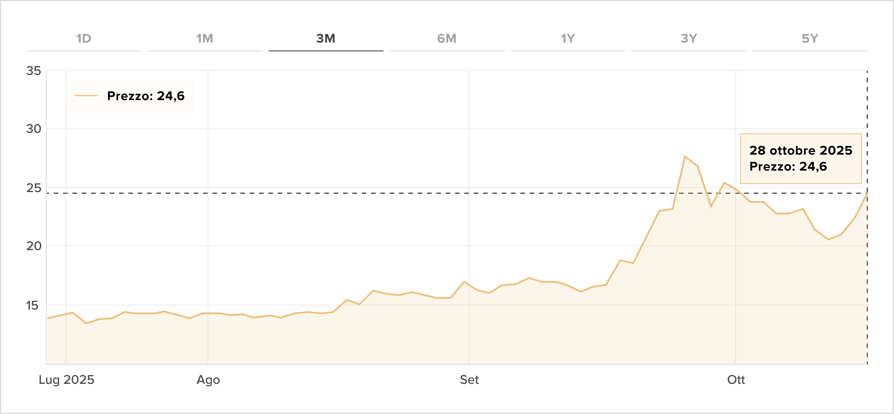 - La battaglia per Eles si surriscalda: Xenon Private Equity rilancia a 2,65 euro per azione dopo la controfferta totalitaria di Mare Group a 2,25 euro. Il mercato però scommette su ulteriori rilanci: il titolo chiude a 2,84 euro, ben oltre le offerte attuali e vicino al fair value stimato di 3,1 euro per la società umbra specializzata in attrezzature per test di semiconduttori.