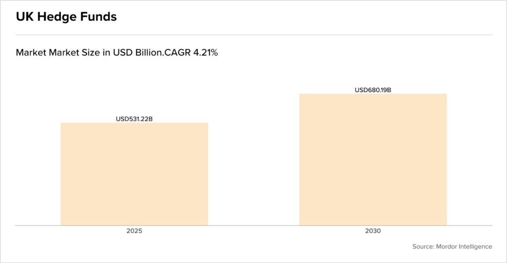 The UK’s hedge fund industry has defied post-Brexit skepticism, sitting on $531bn in assets and tracking toward $680bn by 2030, as forecasted by Mordor Intelligence.