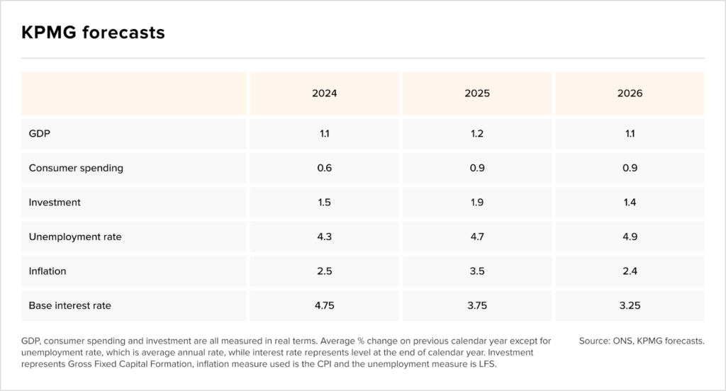As 2025 draws to a close, can we expect 2026 to be a more successful period for the UK economy? Not according to KPMG, which forecasts that GDP growth will slow to 1.1% next year from 1.2% in 2025.