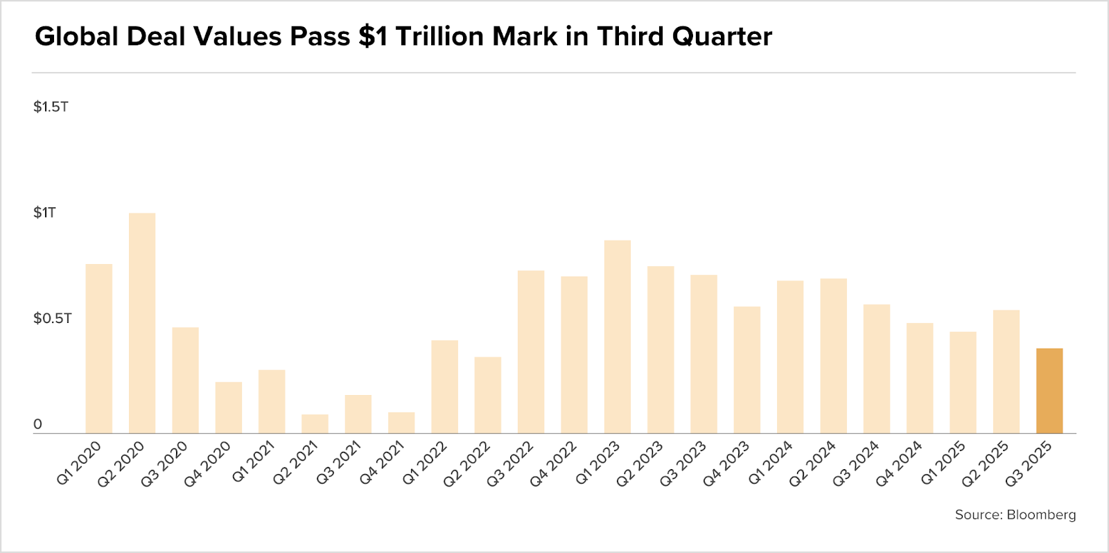 Dealmakers are celebrating a rare milestone as global M&A values surged past $1tn in Q3 2025, only the second time this occurred in a third quarter on record.