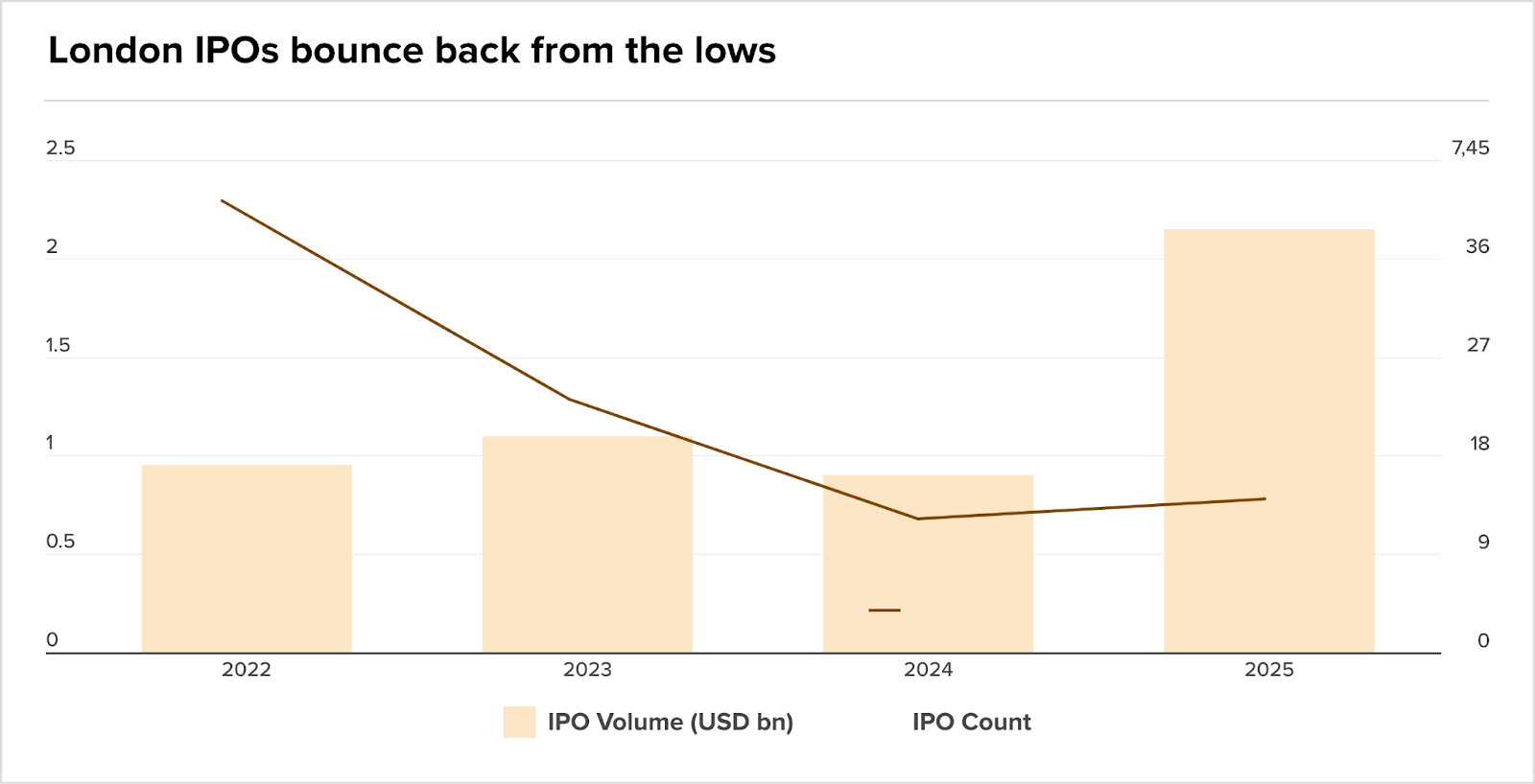 Yet these mid-cap listings, alongside Beauty Tech Group and Fermi America’s dual listing, have lifted the LSE to a four-year IPO high of approximately $2.2bn as of the end of October.